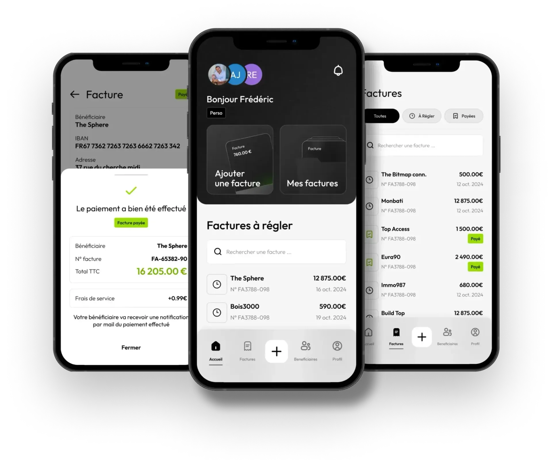 L’application centralise toutes les factures et paiements en un seul endroit, en s’adaptant à chaque profil d’entreprise.